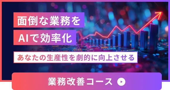 その悩みを解決。AIを使いこなし、面倒な作業を効率化する具体的なノウハウを学び、あなたの生産性を劇的に向上させ、職場で一目置かれる存在を目指します。