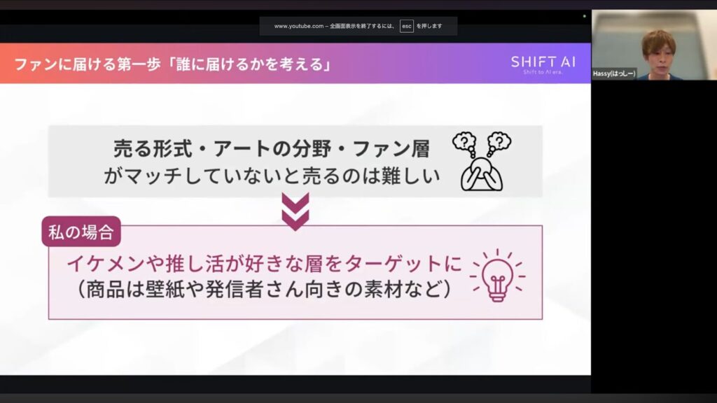 今回は、AI大学「SHIFT AI」で開催された会員向けオンラインウェビナー「売れない不安を自信のある行動に変える 届けて売るまでの導線が学べる AIアート収益化術」の内容の一部を特別公開します。