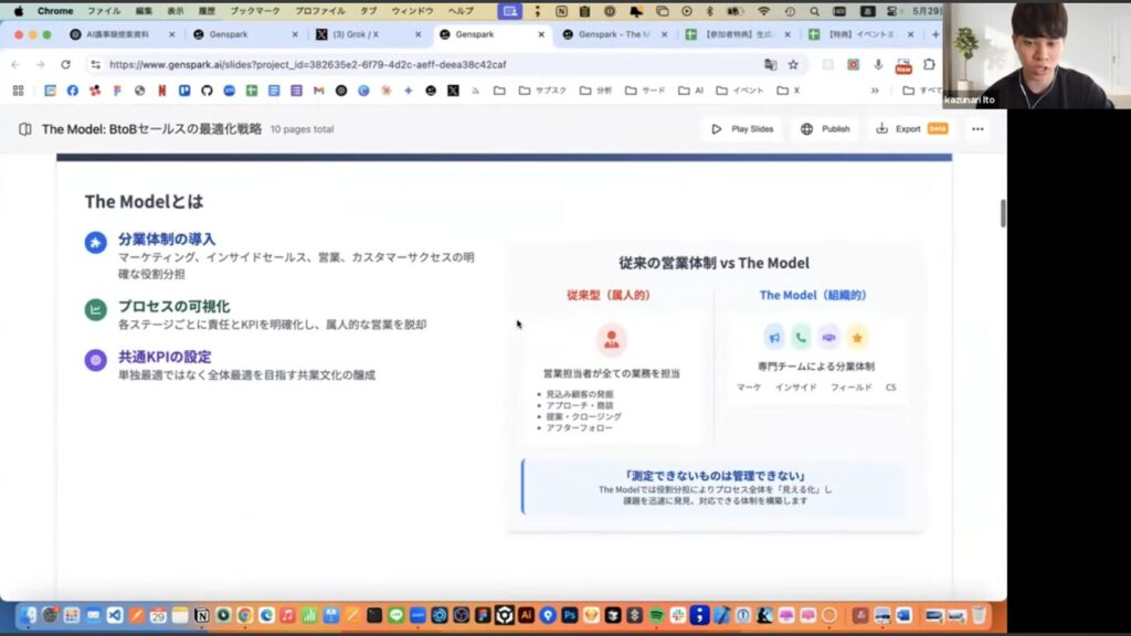 - 提案資料はChatGPTで構成案を作り、GenSparkで一気にスライド化する