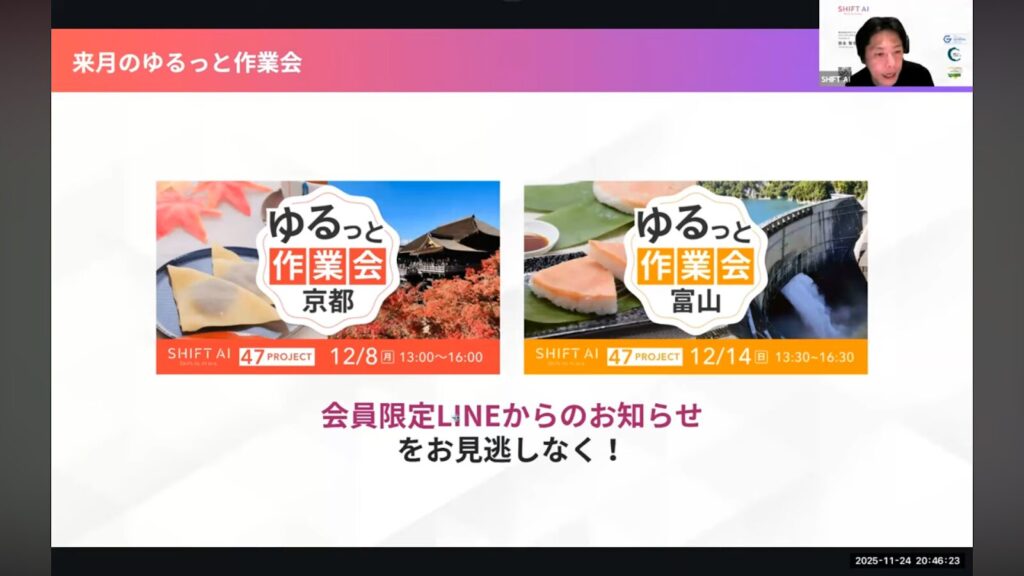 ※ウェビナー本編では、さらに具体的な「AIを活用した年賀状作成」のアイデアや、エンジニア向けツール「Cursor」の学習方法についてのQ&Aも展開されました。