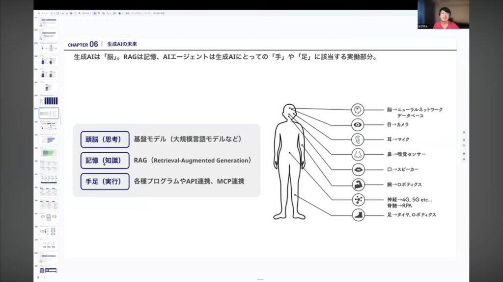 - 生成AI(脳)とエージェント(手足)の連携が鍵になる