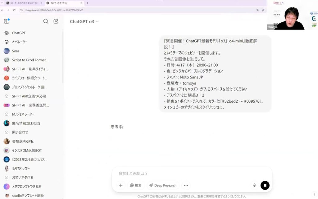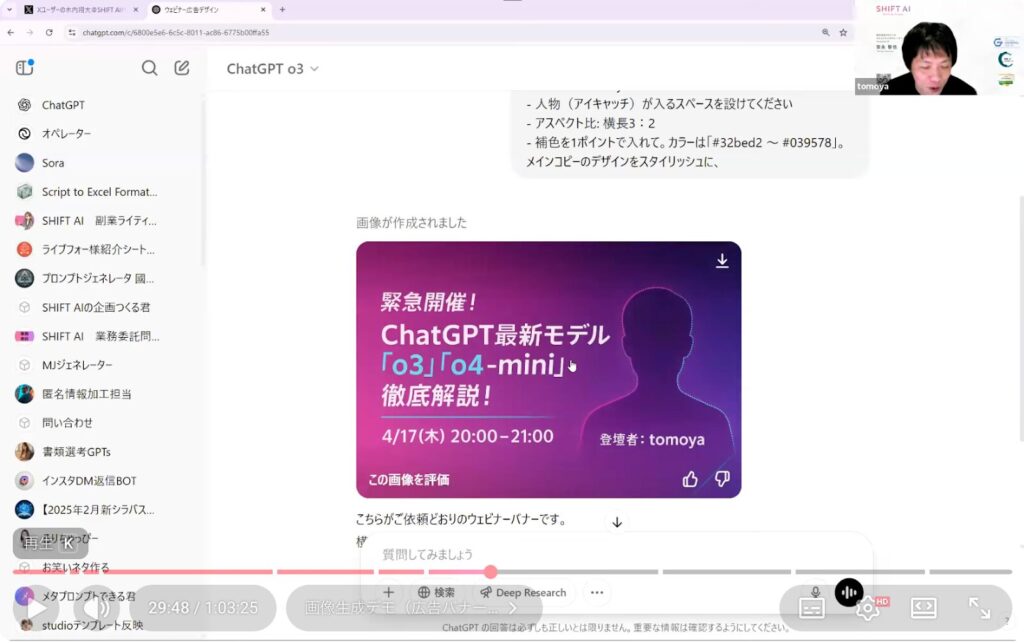 ウェビナーでは、実際にo3を使って架空のウェビナーバナーを作成するデモが行われました。